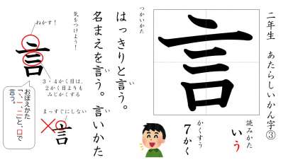 きょうのかん字は,「言う」と「行く」です。