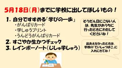 まだ休校がつづきますが,おうちでがんばってくださいね!