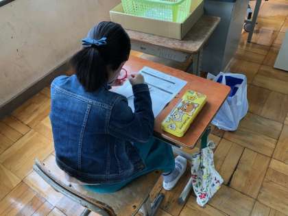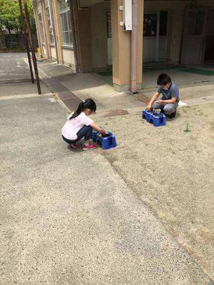 学習相談に来てくれた人と,種のかんさつをして,うえきばちにホウセンカの種をまきました。来ていない人の分のホウセンカは,来ていた人が,みんなのうえきばちにまいてくれました。