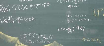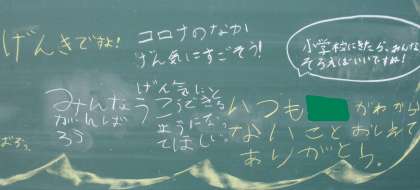 そして,あえなかったともだちに,「がんばろう!」「げん気ですか?」とこくばんに,メッセージを書いてくれました。学校が早くはじまるといいですね!
