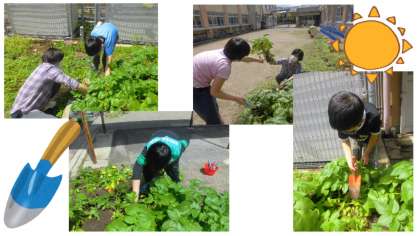 みんなでがんばってほったじゃがいも,おいしく食べてくださいね。