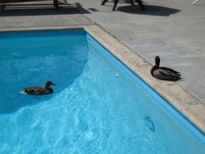 プールサイドには,のんびり休んでいる○○。(この写真は学校ではありません)