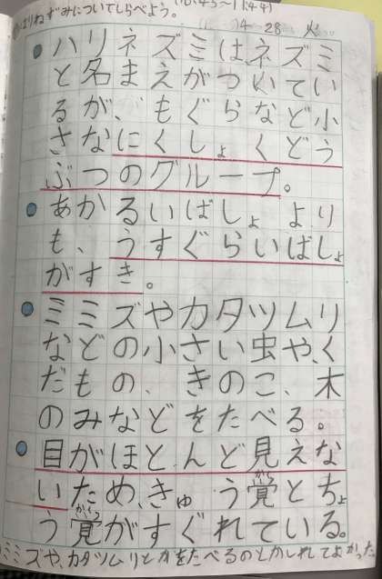このまえ出してもらったノートを見てみると,やはり2年生になるとちがいますね。