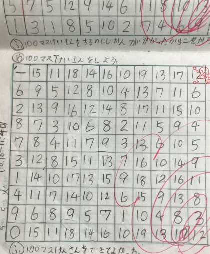 かん字でまちがいやすいところを,赤色でしるしをつけたり,ホームページでしょうかいした「100マスけいさん」をしたりしている人もいました。