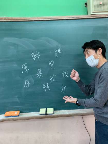 黒板には,5年生で習う漢字が書いてあります。
