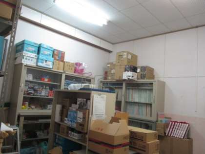 じむしつには,みなさんが つかう がようしや テープなど,たくさんの ものが おいてあるのですよ。