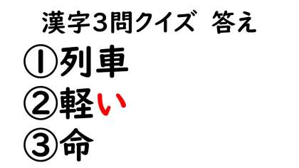 とつぜんですが,漢字3問クイズです。3年生で習った漢字です。