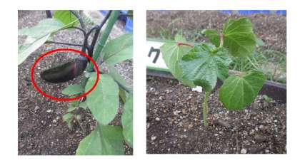 ナスは,早くも実がつき,大きくなってきました。ピーマンは白い色の花が,キュウリは,黄色い花が花が咲き始めています。オクラも丈がずいぶん伸びてきています。2年生は休み時間を使い,頑張って水やりをしています。ミニトマトも他の野菜もどんどん大きくなってほしいです。