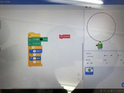 最後の自由時間では,星の形や円に近い形を作ったり,音声を挿入したりと,プログラミングしたものを紹介し合っていました。