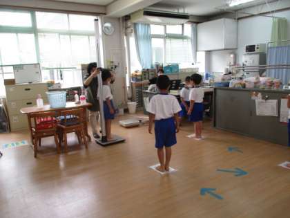 10日(水),発育測定がありました。養護の先生から身長や体重の測り方を聞いたあと,実際に測定を行いました。