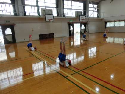 広い体育館で体を動かしてとてもうれしい様子でした。