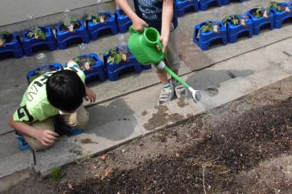 今週,3年生の花壇にまいた3種類のタネから早くも芽が出ています。いったい,どのタネから芽がでてきたのでしょうか。今後も,大きくなるよう愛情をそそいでいきます。