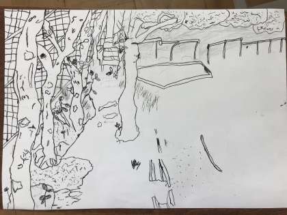 広沢小学校の中で,お気に入りの場所を描きました。