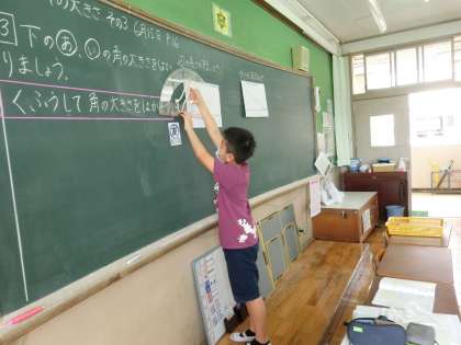 算数の学習では,分度器の使い方に慣れてきています。