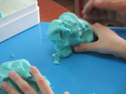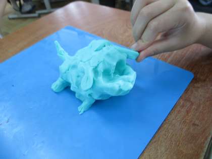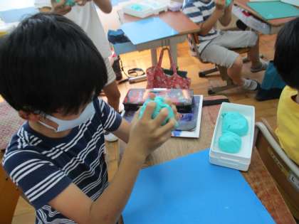 8日(水),図工で「にぎにぎねん土」に取り組みました。粘土をぎゅっとにぎってみて,できた形からイメージしたものをつくりました。