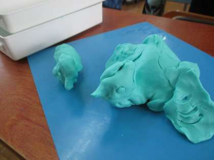 2年生の「にぎにぎねん土」の作品です。何かわかりますか?よく見ていると,いろいろなものに見えてきます。