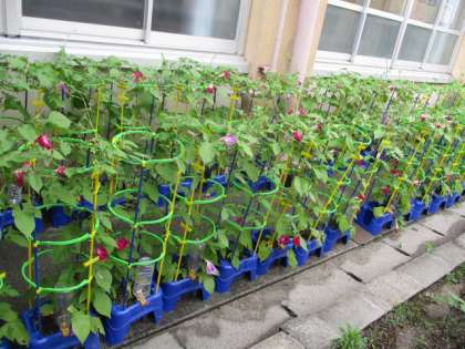 登校して,アサガオの様子に気付いた子どもたちが「晴れたら,元気になるかな。」「大丈夫かな。」と,心配そうに話していました。