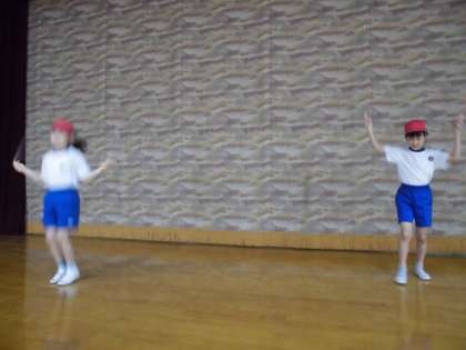 久しぶりのなわとびに「脇をしめて」「手首をやわらかくして」「つまさきでおりる」などの跳び方のコツに着目し,次からの課題を見つけることができました。