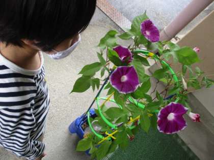1年生 アサガオの花を摘みました