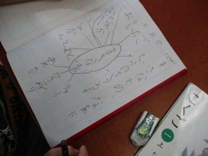 1時間目の今日は,自分の好きな食べ物や遊び,生き物などをノートいっぱいに書き出しました。そして,その中から1番友だちに伝えたいものを1つ決めました。