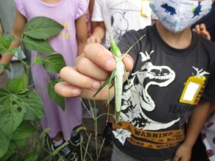 「見て見て!ちょうちょがいるよ。」「バッタって,こんなに跳ぶんだね。」と,喜んで観察をしていました。