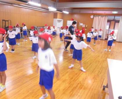 休み時間にも曲に合わせて一生懸命練習している1年生。リズムに合わせて回ったり,ジャンプしたり・・・元気いっぱいに踊っています。中には,表情をつけたり,歌いながら踊ったりしている子もいます。