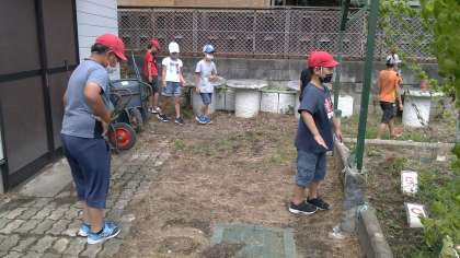 7日(月),本日は普段入らないところまで,先生と一緒に虫たちのようすを見にいきました。プールにはアメンボやイナゴがいました。他のところは…やはり,気温が高すぎるのかほとんど見られませんでした。虫たちも生き物です。活動の適温があるようです。