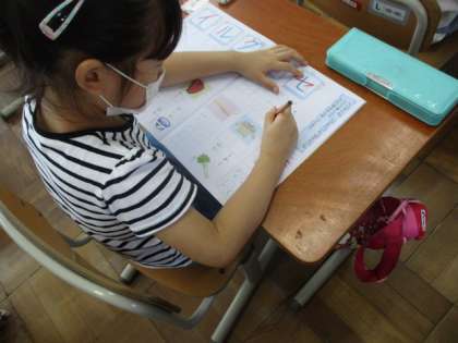 8日(火)は,「セ」と「チ」の練習をしました。止めやはらいに気を付けながら,一生懸命書いています。