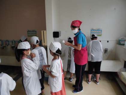 中学年の給食の量にも慣れてきました。給食当番は特にしっかり手を洗います。消毒はペーパーで水分を取ったあとに行います。清潔な姿で,給食当番を行う姿もおにいさん,おねえさんになってきました。