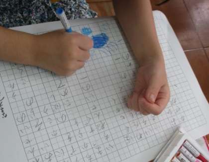 みんなでいろいろな読み方をした後,詩の視写をしました。「『おひさま』とか『空』とか出てきて,気持ちがよさそうな感じだなと思いました。」「次は,元気な感じで読んでみたいな。」と話す1年生でした。