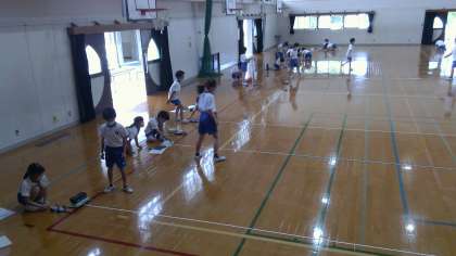 理科を体育館で行いました。今回は輪ゴムのエネルギーがより強くなるとの予想の元,より広い場所が必要だったからです。実際の結果はおもしろいことになりました。予想と結果の違いにより,自分の考えがさらに広がっていきます。