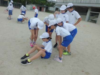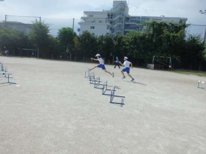 アドバイスを出し合ったり,動画で確認したりする中で,飛び越し方の改善点を探し,修正しました。前回より記録が伸びた子も多くいました。この調子で,50m走とのタイム差を縮めていきましょう。