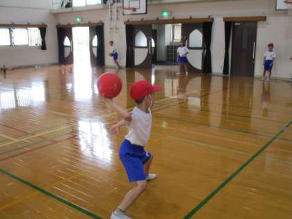 片手で遠くにボールを投げたり,的に向かって投げたり,みんな,楽しんで取り組んでいます。