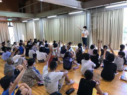 永井先生から,みんなが元気に修学旅行での活動ができるように,保健に関するお話をしていただきました。