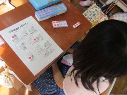28日(月),外国語の学習でボンゴゲームをしました。1月から12月までの言い方をALTと一緒に練習したあと,みんなで楽しんでゲームに挑戦しました。