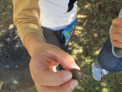 12日(月),生活科の学習で運動場へ行きました。どんぐりや木の実,きれいな色の葉など,たくさんの「秋」が見つかりました。
