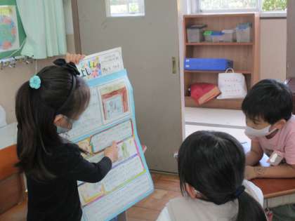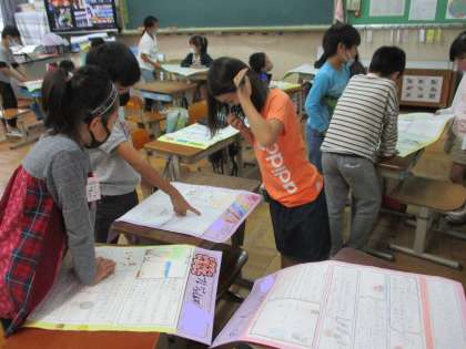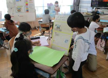 2年生は,この前の町探検で教えていただいたことを,新聞にまとめました。12日(月)は,まとめたことをグループごとに紹介しました。