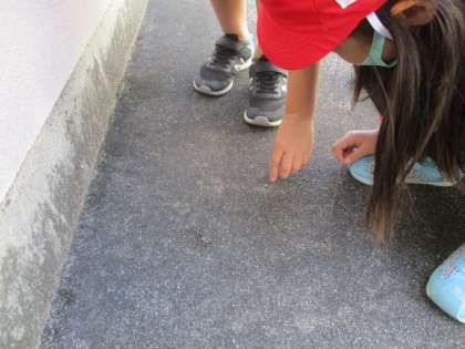 1年生は,休み時間には中庭へ出て遊んでいます。秋の生き物を見つけたり,友だちと遊んだり,普段はなかなか話せない隣のクラスの友だちとお話したり・・・。