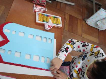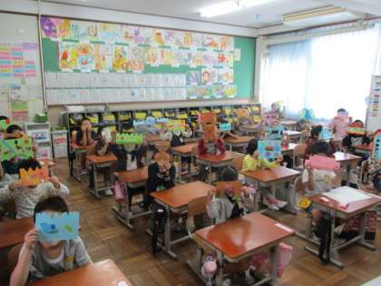 14日(水),図画工作科「おって たてたら」の学習で,画用紙を折って立てた形から,思いついたものを表しました。