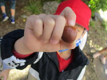 15日(木),生活科の学習で秋を見つけに運動場に出かけました。今回は,来週のリースの飾り付けに使う木の実やまつぼっくりを見つけに行きました。