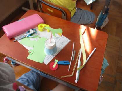 10月14日(水曜日),図工の時間にストローを使って,おもちゃを作りました。