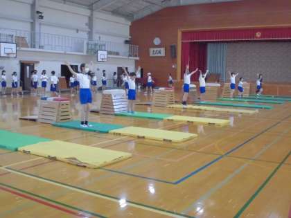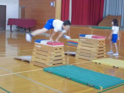 高さや新しい技にチャレンジするだけではなく,美しく着地できるように練習していきます。