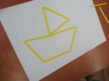 16日(金),算数で「かたちづくり」の学習をしました。前回までは色板を使って学習を進めてきましたが,今回は数え棒を使っての形づくりでした。数え棒を使って,ヨットや風車など,いろいろな形を作りました。