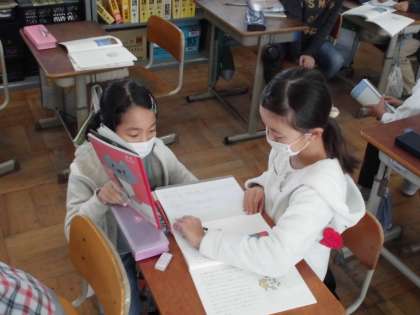 国語では説明文を用いて,学習をしています。今回の文章には,「はじめ」の部分に問いがありませんでした。そこで,どのような問いの文になるのか考えました。それを理由をつけて,友だちと交流しました。