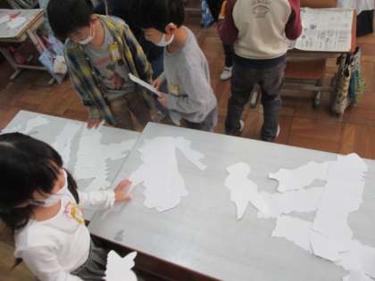 4日(水),図画工作科で「いろいろな かみの かたちから」の学習をしました。