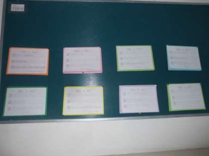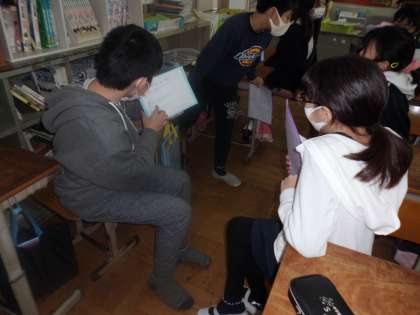 11日(水),外国語では,自分の憧れの人や好きなキャラクターなど,好きなものや性格をクイズにし,友達と出し合いました。