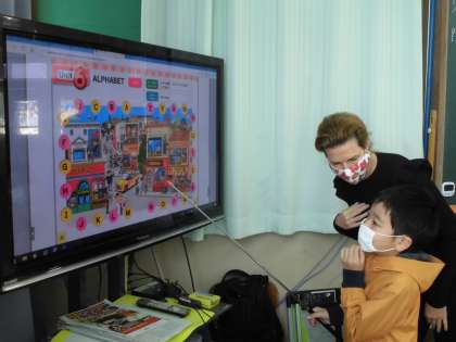 本日もミーガン先生と外国語活動をしました。テキストにあるかくれたアルファベットを探しています。「今回は大文字に親しんだので,次は小文字に挑戦したい」という話がでました。次への目標をしっかりもっての活動ができていました。