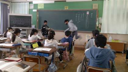 13日(金),ペアで柿山伏の発表会を行いました。みんなの前で発表することにとても緊張していたようですが,その緊張を感じさせないくらいの演技をしている人もたくさんいました。