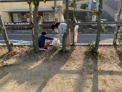 5年生は,運動場周りと給食室西側の花壇の清掃をしました!
