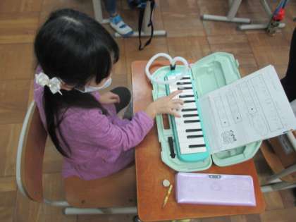 20日(金),音楽の学習で,鍵盤ハーモニカを使って旋律を作りました。